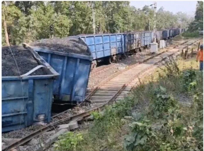 Pendra // छत्तीसगढ़ के गौरेला-पेंड्रा-मरवाही जिले में मंगलवार को कोयला लोड मालगाड़ी डिरेल हो गई। इंजन सहित 23 डिब्बे पटरी से उतरकर पलट गए। मालगाड़ी बिलासपुर की ओर जा रही थी, तभी भनवारटंक रेलवे स्टेशन के पास हादसा हो गया।