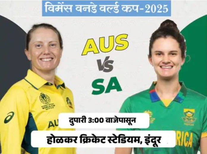 महिला एकदिवसीय विश्वकप का 26वां मैच ऑस्ट्रेलिया और दक्षिण अफ्रीका के बीच खेला जाएगा। यह मैच भारतीय समयानुसार दोपहर 3:00 बजे इंदौर के होलकर स्टेडियम में शुरू होगा। ऑस्ट्रेलिया और दक्षिण अफ्रीका दोनों ही पहले ही उपांत्य चरण के लिए पात्र हो चुके हैं। विजयी टीम अंक तालिका में शीर्ष स्थान पर बनी रहेगी।