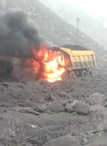 ब्रेकिंग कोरबा :: गेवरा खदान में कोयला लोड ट्रक में लगी भीषण आग ,ट्रक चालक ने कूद कर बचाई जान …देखिए वीडियो