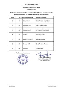 ब्रेकिंग छत्तीसगढ़ कांग्रेस की तीसरी सूची जारी देखिए किसको कहां से मिला टिकट