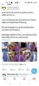 मुख्यमंत्री ने इसकी तस्वीर सोशल मीडिया पर पोस्ट की है। उन्होंने पोस्ट करते हुए लिखा है कि- हर बार वह दिन याद आता है जब पहली बार नामांकन दाखिल करने गया था। आज पाटन विधानसभा क्षेत्र से प्रत्याशी के रूप में नामांकन दाखिल करने भिलाई निवास से निकला हूं। मेरी धर्मपत्नी मुक्तेश्वरी ने हर बार की तरह तिलक किया। आप सबका प्यार मेरा संबल है। छत्तीसगढ़िया स्वाभिमान के लिए, आप सबकी सेवा के लिए सदैव समर्पित रहने का वादा आपसे करता हूं।
