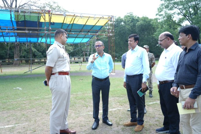 कोरबा 10 अगस्त 2024/ कलेक्टर श्री अजीत बसंत और पुलिस अधीक्षक श्री जितेन्द्र शुक्ला ने सीएसईबी ग्राउंड में स्वतंत्रता दिवस के उपलक्ष्य पर आयोजित होने वाले मुख्य समारोह की तैयारी का निरीक्षण किया। उन्होंने मंच व्यवस्था, बैठक व्यवस्था, गाड़ियों की पार्किंग एवं सुरक्षा व्यवस्था के बारे में चर्चा कर अधिकारियों को आवश्यक निर्देश दिए। कलेक्टर श्री वसंत ने सभी तैयारियों को समय सीमा में पूर्ण करने के भी निर्देश दिए। 13 अगस्त को स्वतंत्रता दिवस के संबंध में अंतिम रिहर्सल किया जाएगा। कलेक्टर ने नगर पालिक निगम को आयोजन स्थल पर मंच निर्माण सहित अन्य व्यवस्था सुनिश्चित करने के निर्देश दिए। इस दौरान अपर कलेक्टर श्री दिनेश नाग, श्री अनुपम तिवारी,पीडब्ल्यूडी ईई श्री जी आर जांगडे सहित अन्य अधिकारी उपस्थित थे।