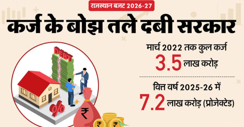 Rajasthan Budget: राजस्थान का कर्ज बीते पांच वर्षों में तेजी से बढ़ा है। मार्च 2022 में 3.53 लाख करोड़ से बढ़कर 2025-26 में 7.26 लाख करोड़ रुपये तक पहुंचने का अनुमान है। वेतन, पेंशन और ब्याज भुगतान में वृद्धि से वित्तीय स्थिति पर दबाव बढ़ रहा है, जबकि राजस्व प्राप्तियां और केंद्रीय अनुदान अपेक्षा से कम रहे हैं।
