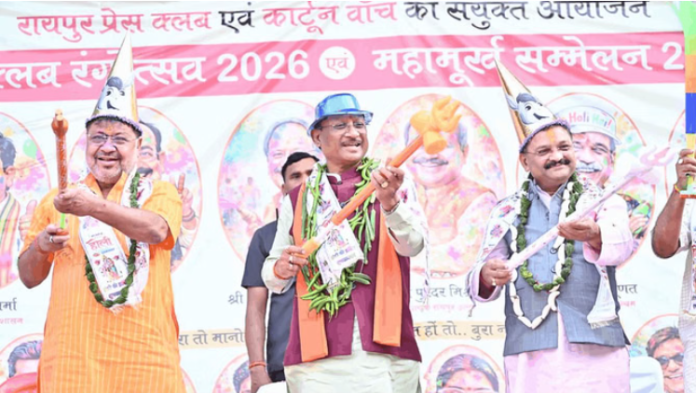 छत्तीसगढ़ में आज होली मिलन समारोह का आयोजन किया गया। इस कार्यक्रम में मुख्यमंत्री विष्णुदेव साय भी पहुंचे। यह समारोह मोतीबाग स्थित रायपुर प्रेस क्लब में महामूर्ख सम्मेलन 2026 का आयोजन किया गया।