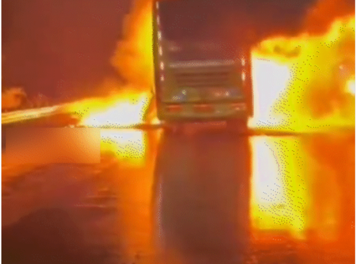 बस में आग लगने का वीडियो महामार्ग पर पीछे से आ रहे लोगों ने रिकॉर्ड किया।