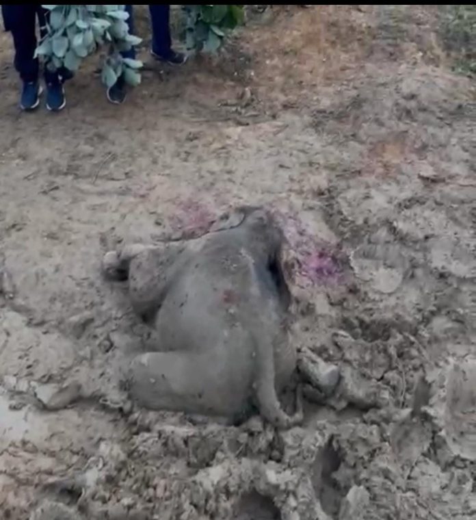 दलदल में फंसकर हुई मौत —सूत्रों की माने तो बेबी एलिफेंट दलदल में फस गया था जिससे उसकी मौत हो गई ,वन विभाग की निगरानी दल की खुली पोल