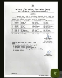 Korba breaking // पुलिस अधीक्षक ने तबादला सूची जारी की कई थाना ,चौकी प्रभारी हुए प्रभावित ,देखे सूची,