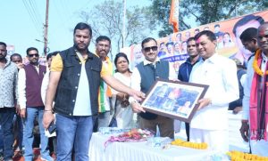 कोरबा-पाली । छत्तीसगढ़ में भाजपा की सरकार बनने व मंत्रिमंडल गठन के बाद शनिवार को प्रथम पाली नगर आगमन पर कैबिनेट मंत्री लखनलाल देवांगन, श्याम बिहारी जायसवाल एवम् विधायक प्रेमचंद पटेल का भव्य स्वागत किया गया । शिवनगर पाली में भाजपा कार्यालय के समीप मंच पर कैबिनेट मंत्रियों एवं विधायक के प्रथम नगर आगमन पर भाजपा के समस्त कार्यकर्ताओं में गजब का विश्वास और जोश देखने को मिला। भव्य आतिशबाजी और ढोल-ताशे के साथ प्रथम नगर आगमन पर दोनों कैबिनेट मंत्रियों एवं विधायक का फलों से तौल कर स्वागत किया गया।उसके पश्चात समस्त कार्यकर्ताओं के द्वारा बुके फूल मालाओं से स्वागत किया गया। उन्हें पाली के ऐतिहासिक माँ महिषासुरमर्दिनी की मनोहारी तस्वीर भेंट की गई