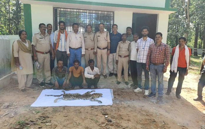 मनेन्द्रगढ़-चिरमिरी-भरतपुर जिले के कुंवारपुर परिक्षेत्र में तस्कर तेंदुए की खाल को बाइक में रखकर तस्करी के लिए लेकर जा रहे थे. तभी वन विभाग की टीम ने खाल सहित 3 आरोपियों को पकड़ लिया. वन विभाग के अधिकारियों का कहना है कि क्राइम लाइफ कंट्रोल ब्यूरो रायपुर को सूचना मिली थी कि 3 लोग भगवानपुर में चांग माता मन्दिर के मार्ग पर संदिग्ध रूप से घूम रहे हैं. इस सूचना पर टीम ने परिक्षेत्र के वन कर्मचारियों के सहयोग से भगवानपुर में चांगदेवी माता मन्दिर चौराहा के पास से मदन सिंह गोंड, पवन यादव और राजेन्द्र सिंह गोंड को हिरासत में लेकर पूछताछ के बाद गिरफ्तार कर लिया.
