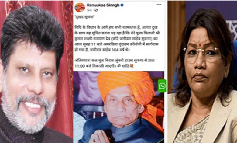 भाजपा के प्रदेश अध्यक्ष किरण सिंह देव के पिताजी लक्ष्मी नारायण देव छोटे जमीदार साहब सुकमा का 11 बजे अमरविला वृंदावन कॉलोनी में स्वर्गवास हो गया। जिसके बाद उक्त जानकारी को भाजपा प्रदेश अध्यक्ष किरण सिंह देव ने अपने फेसबुक के सोशल मीडिया प्लेटफार्म पोस्ट किया था। जिसके बाद हुबहू पूर्व केंद्रीय मंत्री एवं सोनहत भरतपुर की नवनिर्वाचित विधायक रेणुका सिंह ने अपने सोशल मीडिया अकाउंट से पोस्ट किया। जिसके बाद कई लोगों ने समझा कि रेणुका सिंह के पिता का निधन हो गया है। हालांकि बाद में विधायक को गलती का एहसास होने पर उन्होंने तुरंत उक्त पोस्ट को डिलीट कर सोशल मीडिया से हटा लिया।