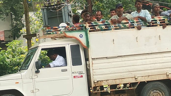ठेकेदार द्वारा मजदूरों को एक स्थान से दूसरे स्थान ले जाने के लिए मालवाहक वाहन पिकप का उपयोग किया जाता है , जबकि उन्हें सवारी गाड़ी में  सुरक्षित ले जाना चाहिए ,इस प्रकार की मनमानी किसी दिन मजदूरों के जीवन के लिए घातक सिद्ध हो सकती है ,