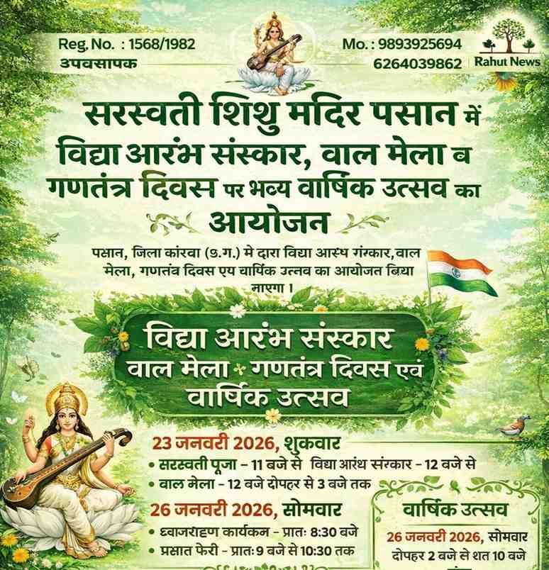 पसान सरस्वती शिशु मंदिर में आयोजित रंगारंग सांस्कृतिक कार्यक्रम का सीधा प्रसारण देखें।