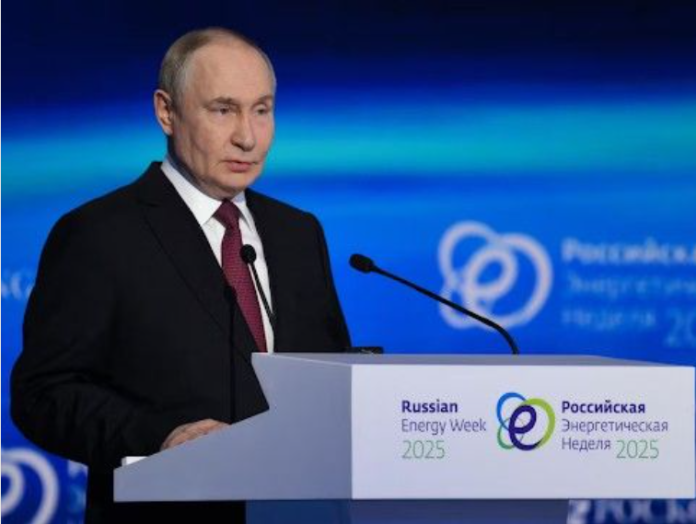 १६ अक्टूबर २०२५ को मॉस्को में रूसी एनर्जी वीक में भाषण देते राष्ट्रपति व्लादिमीर पुतिन।