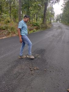 ठेकेदार द्वारा यहां बनने वाले सड़क में डामर का उपयोग इतना कम किया गया है कि यह सड़क अपनी मजबूती की कहानी खुद बया कर रही है , यह सड़क इतनी मजबूत बनी है कि पैर से रगड़ने मात्र से ही सड़क उखड़ने लगती है