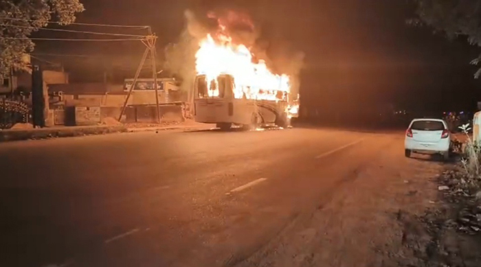चलती बस में अचानक लगी आग 3 यात्री घायल