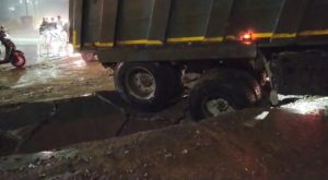 आधे घंटे तक बहता रहा पानी, हाईवा गुजरते ही धंस गई सड़क