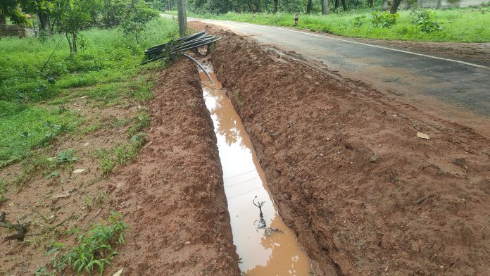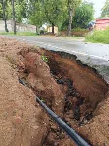 ,वही कई स्थानों पर मिट्टी बारिश में बह गई है। इससे पाइप भी नजर आ रहा है। सड़क किनारे गड्डा होने के कारण दुर्घटना की आशंका बढ़ गई है। जल जीवन मिशन के तहत पानी टंकी निर्माण के साथ ही पाइपलाइन बिछाई जा रही है।