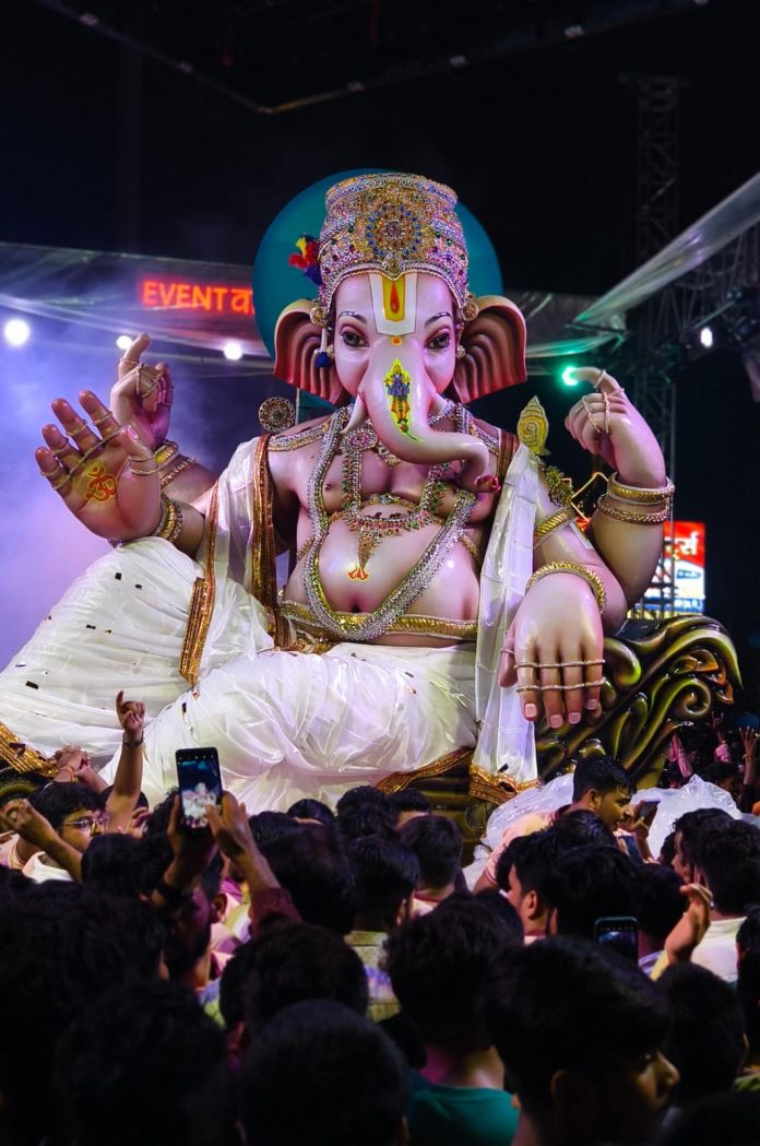 21 फीट ऊंची इस भव्य प्रतिमा का निर्माण छत्तीसगढ़ के राजनांदगांव जिले के थाना स्थित प्रसिद्ध राधे आर्ट गैलरी द्वारा किया गया है. इस प्रतिमा के नगर आगमन पर स्थानीय लोग अत्यंत खुश नजर आए और उत्साह के साथ इस त्योहार को मनाया.