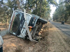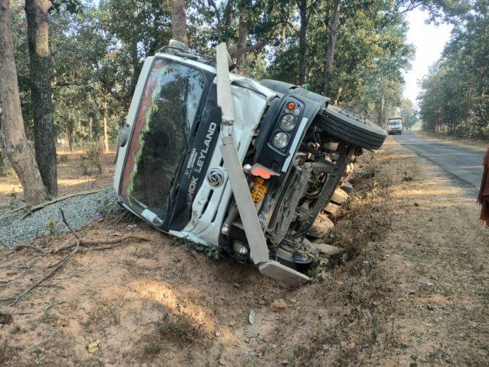 जानकारी के अनुसार एक ट्रक ओवरलोड गिट्टी भरकर पुटी पखना की ओर जा रहा था की अचानक ट्रक का संतुलन बिगड़ गया और वह विद्युत के खम्बे को तोड़ते हुए पलट गया ,ट्रक के पलटने से विद्युत आपूर्ति बंद हो गई , यहां यह बताना लाज़मी होगा की ग्रामीण प्रधानमंत्री सड़क पर ओवरलोड ट्रक के लगातार चलने से पुटी पखना – पसान मार्ग अत्यंत जर्जर हो गया है यहां छोटी गाड़ियों को चलने में परेशानी का सामना करना पड़ रहा है ,