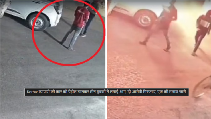 कोरबा कोतवाली थाना क्षेत्र अंतर्गत दर्री मुख्य मार्ग का मंगलवार की देर रात घर के बाहर खड़ी व्यापारी के कार पर तीन युवकों ने पेट्रोल डालकर उसे आग के हवाले कर दिया। इस घटना के बाद मौके पर हड़कंप मच गया और देखते ही देखते लोगों के भीड़ एकत्रित हो गई। किसी तरह आग पर काबू पाया गया, वहीं सूचना मिलते ही कोतवाली थाना पुलिस मौके पर पहुंची और घटनाक्रम की जानकारी लेते हुए जांच शुरू की। जहां दुकान के आसपास लगे सीसीटीवी कैमरों की फुटेज के आधार पर आरोपियों की पहचान करते हुए तलाश शुरू की गई। दो युवकों को पकड़ लिया गया है और तीसरे की तलाश जारी है।