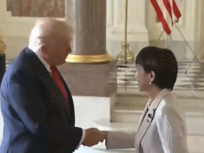 अमेरिकी राष्ट्रपति डोनाल्ड ट्रम्प ने मंगलवार को जापान की नई प्रधानमंत्री साने तकाइची से टोक्यो स्थित अकासाका पैलेस में भेंट की। इस अवसर पर ट्रम्प ने जापान को अमेरिका का सबसे मज़बूत सहयोगी बताते हुए उसकी हरसंभव सहायता का आश्वासन दिया।