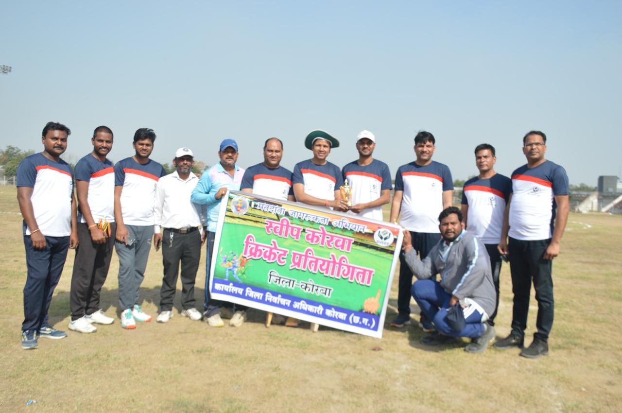 कोरबा। कलेक्टर व जिला निर्वाचन अधिकारी अजीत वसंत के मार्गदर्शन में लोकसभा निर्वाचन 2024 में शत प्रतिशत मतदान के लिए मतदाताओं को प्रेरित करने हेतु जिले में मतदाता जागरूकता कार्यक्रम लगातार आयोजित किए जा रहे हैं। इसी कड़ी में आज शुक्रवार को जिला प्रशासन एवं कोरबा प्रेस क्लब के मध्य स्वीप क्रिकेट सद्भावना मैच का आयोजन प्रियदर्शनी इंदिरा स्टेडियम में आयोजित किया गया। जिला प्रशासन टीम के कप्तान सीईओ जिला पंचायत संबित मिश्रा के मार्गदर्शन में खेले गए रोमांचक मैच में प्रेस क्लब की टीम विजयी हुई।